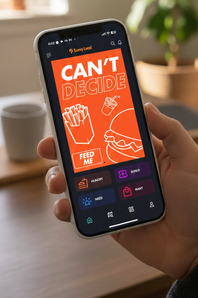 Savvy Local turns Rexburg’s endless options into four easy buttons—hungry, bored, need, want—making plans effortless.
